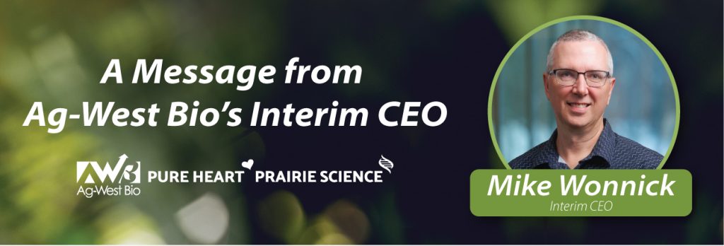 On behalf of Ag-West Bio I would like to thank our members, stakeholders, staff and board for putting their confidence in me to lead the organization at this time of tremendous opportunity!